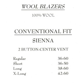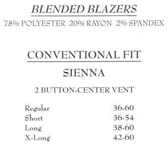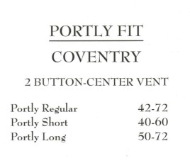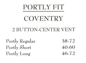 shorts regulars, longs, X longs, portly fits, sports coats and athletic cuts.
